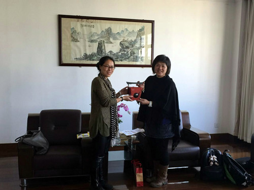 会谈中,范平主任首先代表学校向来宾表示热烈欢迎,简要介绍了管理系专业建设的基本情况。陈怡婷主任对我院的热情接待表示感谢,详细地介绍了其学校的办学情况,亚太创意技术学院原为亲民工商专科学校,于2010年改名为亚太创意技术学院,学院以茶与陶文化为特色。陈主任指出两校在专业设置方面有共同点,希望两校在派遣赴台交流生等方面能开展深度合作。陈怡婷主任还向我院赠送了学生的创意作品——台湾特产香葱油包装设计作品。