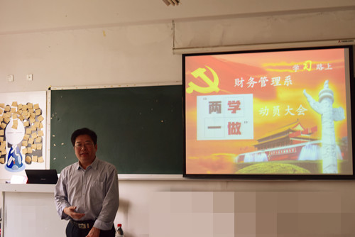 2016年5月18日下午,在一号教学楼1113教室财务管理系举行“两学一做”学习教育动员大会,对在全系教师党员和学生党员中开展“两学一做”学习教育进行动员部署。学院副
