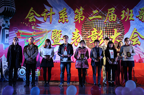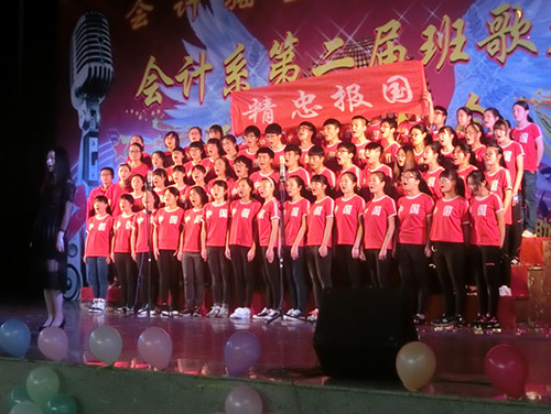 为了丰富校园文化生活,培养同学们的集体荣誉感,增强班级的凝聚力和向心力。会计系于2015年4月15日下午1点在体育馆举行了“会计摇篮,逐梦未来”第二届班歌大赛。出席本次班歌大赛的嘉宾及评委有院团委书记陶元老师,会计系主任徐亚明老师,会计系党总支书记杨军老师,会计系党总支副书记李晓梅老师,会计研究所所长薛茹老师,会计系团总支书记高计龙老师,会计系辅导员王振宇老师以及全体任课老师和班主任。