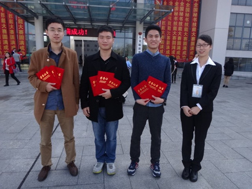 在刚刚结束的2014年全国秘书技能大赛中,我院文秘专业2012、2013级学生葛汉阳、陶伟峰、戴佳豪3位同学在文秘教研室刘艺虹等老师的带领指导下,荣获单项二等奖、全能三等奖的佳绩。本次比赛共有14个省、58个代表队、603名选手参赛,参赛代表队和参赛选手数量均创历史新高。本次比赛由国家教育部教指委主办,台州科技职业学院承办。本次比赛得到了学院领导及有关部门的大力支持。在此,对大赛付出辛勤努力的老师和同学表示热烈的祝贺,也祝我院文秘专业建设迈上一个新的台阶!(语言系供稿)