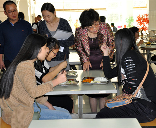 检查组组长询问学生有关食堂用餐情况