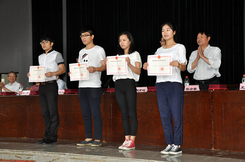 典礼在庄严的国歌声中拉开帷幕,副院长杜宝山教授宣读了国家奖学金获得者名单、省级和校级优秀毕业生表彰决定。学院领导为获奖学生代表及毕业生代表颁发了荣誉证书和毕业证书。