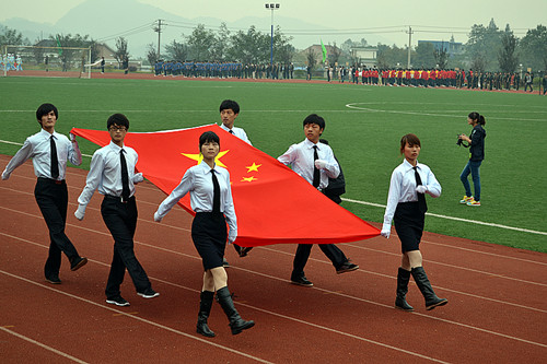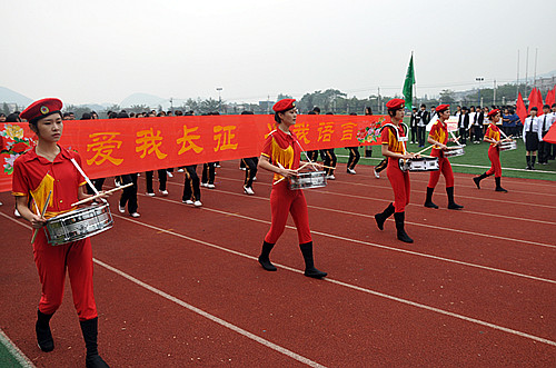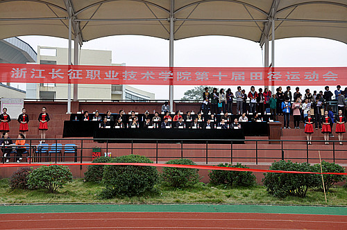 接着学院执行院长吕振合教授宣布:“浙江长征职业技术学院第十届田径运动会开幕。”运动场上顿时礼炮齐鸣、响起了热烈的掌声和欢呼声,学院第十届运动会正式拉开了帷幕。