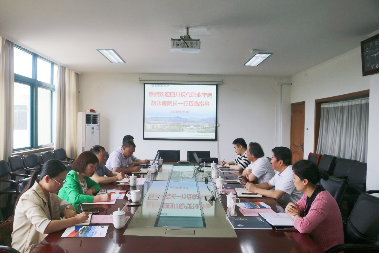 5月18日上午,四川现代职业学院院长胡永甫一行来校调研交流。学校党委书记、常务副院长王其军热情地接待到访客人,学校副院长杜宝山及相关部门负责人参加了座谈会。
