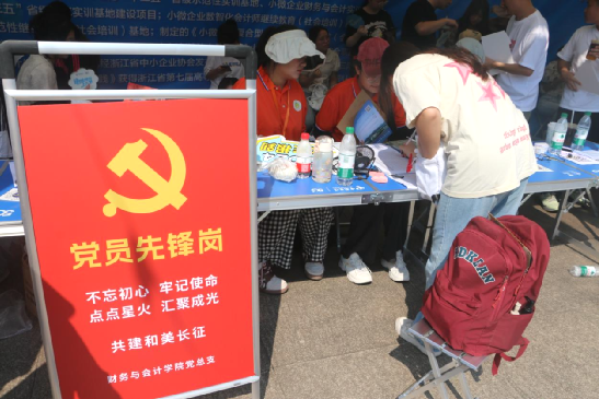 在报到区域设立9个党员先锋岗党员教师