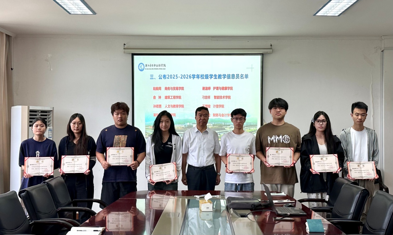 吕振合向优秀学生教学信息员代表颁发了荣誉证书,为新聘任的8名校级学生教学信息员颁发了聘书。