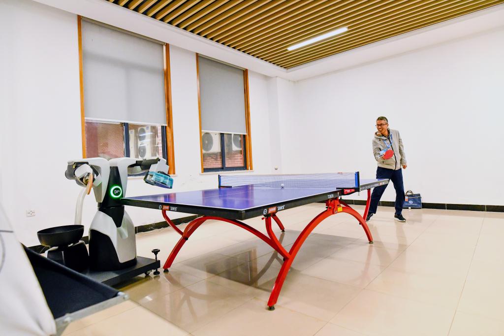 上午会议结束后,参会人员体验了由校企共研的智能对弈机器人、庞伯特乒乓球发球机器人等设备,近距离感受了工业机器人磨抛实训设备、无人机表演,一同观看了由智能技术学院科创中心工业机器人团队带来的机器狗舞狮演出。参会人员还一同前往学校图书馆、实训室、学生宿舍等场所进行参观考察。