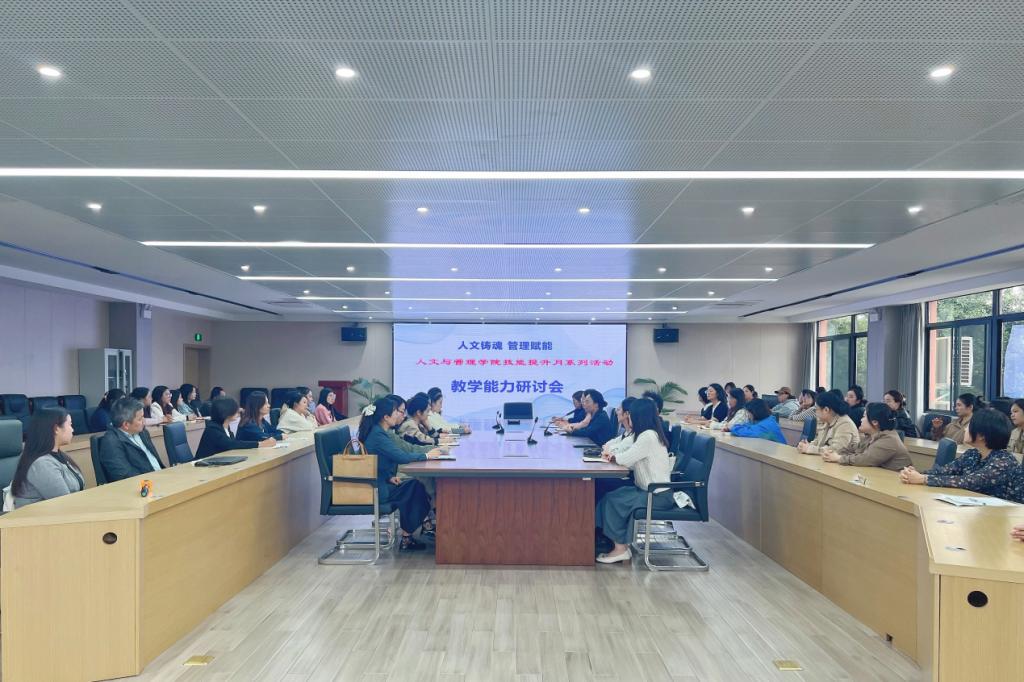 近日,人文与管理学院在第三会议室召开技能提升月系列活动——第五届长三角民办高校教师教学技能大赛分享会。人文与管理学院院长潘雅辉、党总支副书记丁慧瑛、全体教师参加活动。