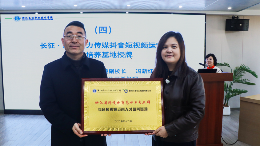 开班仪式上,校企双方领导共同为“长征·冷丰引力传媒短视频运营人才培养基地”与“抖音短视频运营实战营”揭牌。