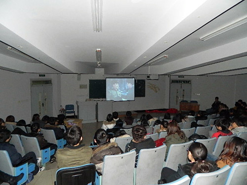 3月2日晚,学院一体两翼学生干部,各系代表和学生公寓代表近两百人在1117教室观看了《雷锋之歌》。